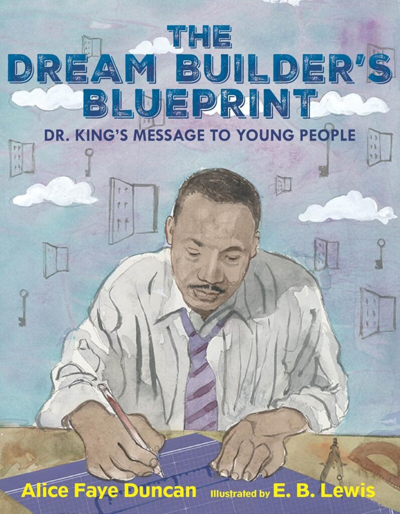 Alice Faye Duncan reinterprets King’s speech as a motivational erasure poem in The Dream Builder’s Blueprint, which is accompanied by spirited and inspired art from Philadelphia-born illustrator, E. B. Lewis. The book highlights the principles of excellence, activism, and compassion that remain relevant and necessary today. Also, the book has a universal message that is ideal for parents, librarians, and teachers looking for a book that distills Dr. King’s principles to a level that kids can understand.